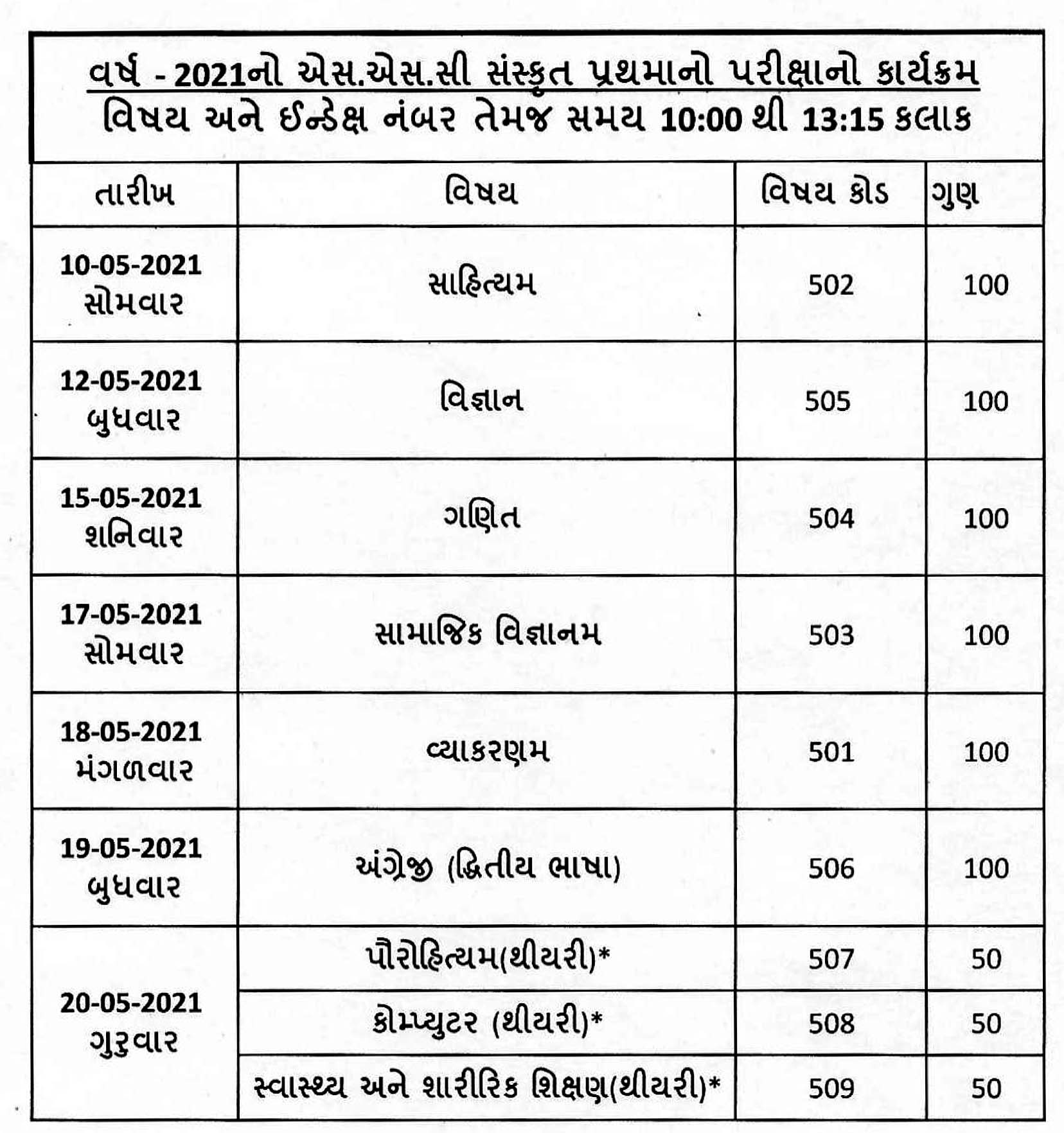>> ઘોરણ-૧૨ (સામાન્યપ્રવાહ)ની પરિક્ષાનો સુધારેલ કાર્યક્રમ- ૨૦૨૧ : અહી ક્લિક કરો