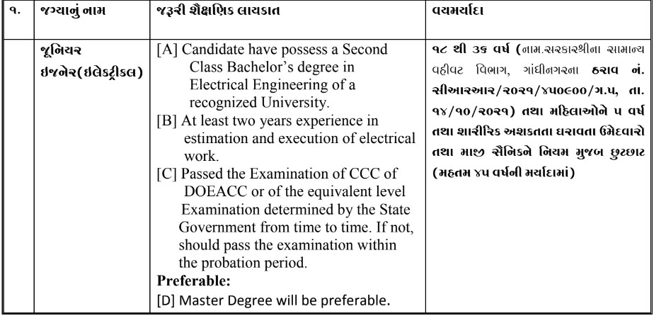 જુનિયર ઇજનેર ઇલેક્ટ્રિકલ (વર્ગ - 3)
