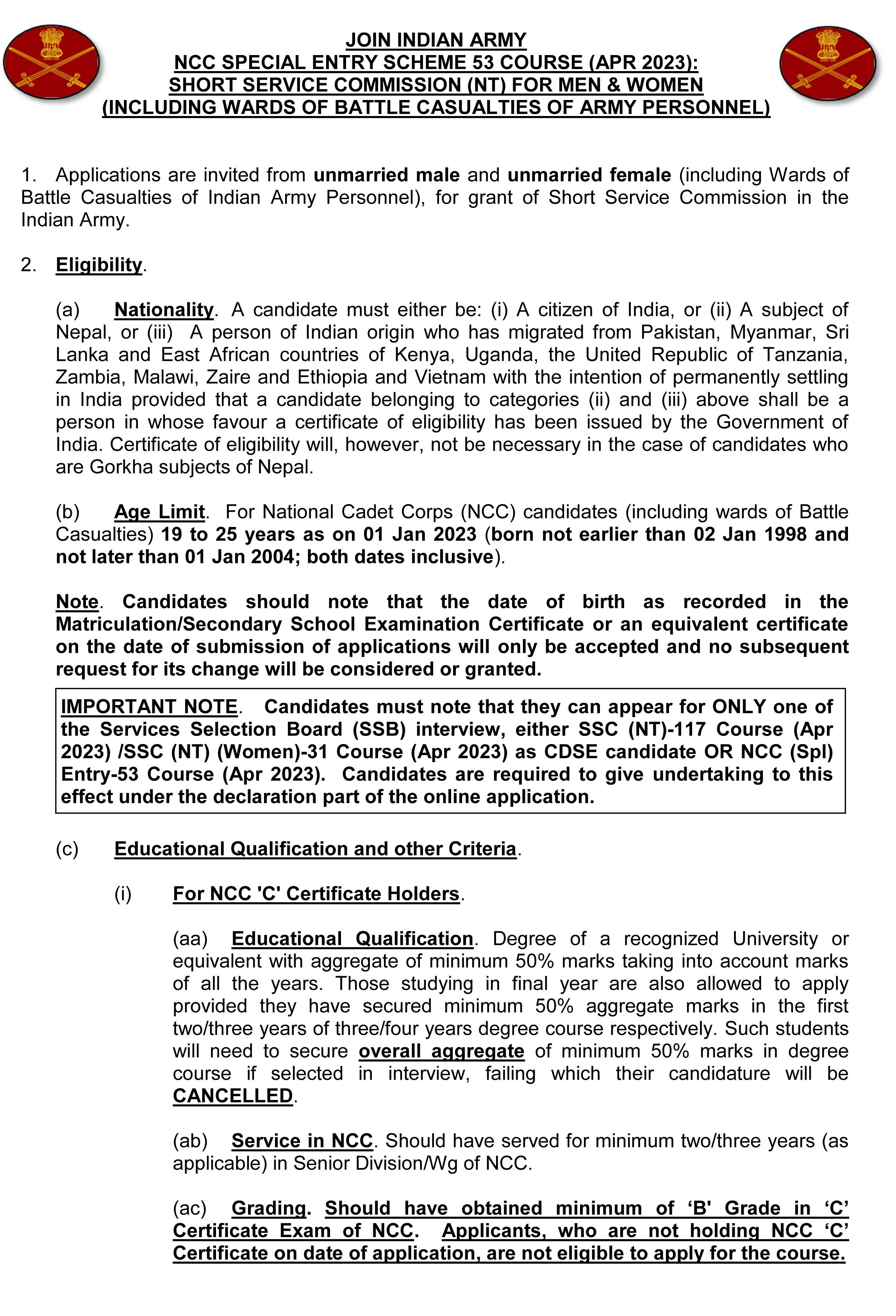 પોસ્ટ : NCC Special Entry Scheme 53th Course (April 2023)ફોર્મ શરૂ તા. : 17/08/2022